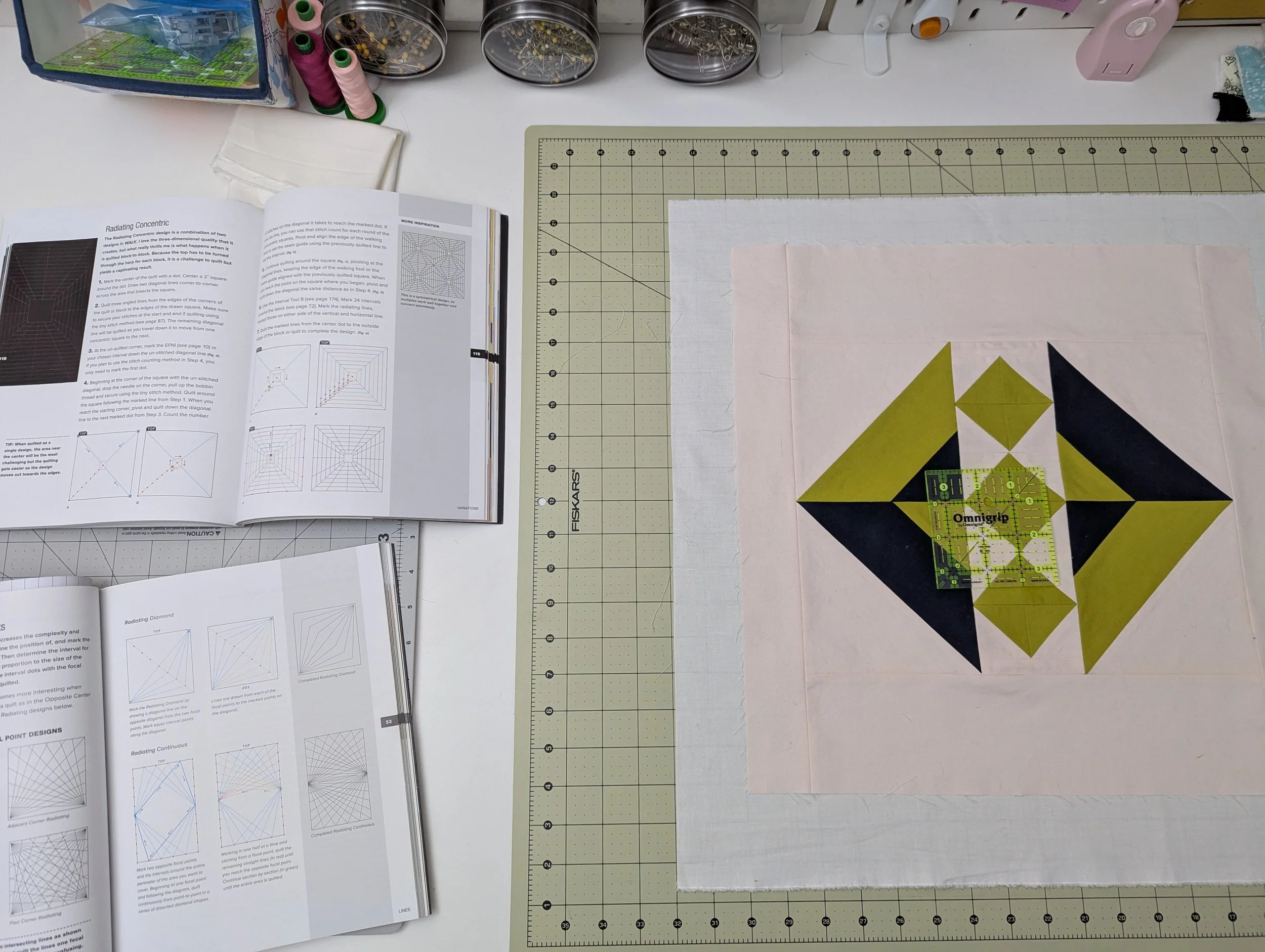 *Tip! Small projects are great ways to experiment with new quilting techniques! I ended up using the radiating concentric quilting design from Walk 2.0 by Jacquie Gering.