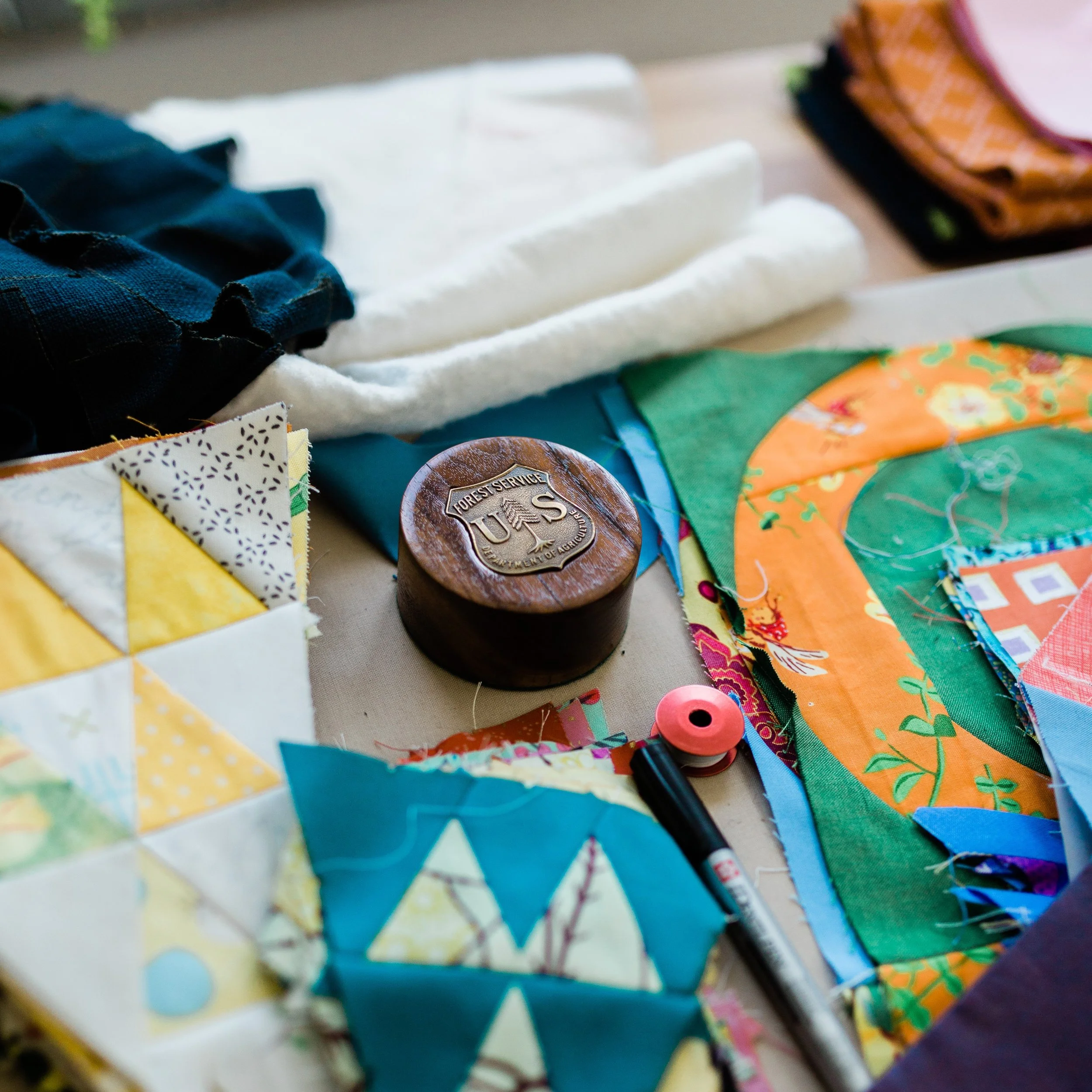 “My mom found my old uniform from my days as a wildland firefighter, and my woodworking dad made me a fabric weight with my badge. It's the perfect reminder of my adventures working with the Forest Service.”